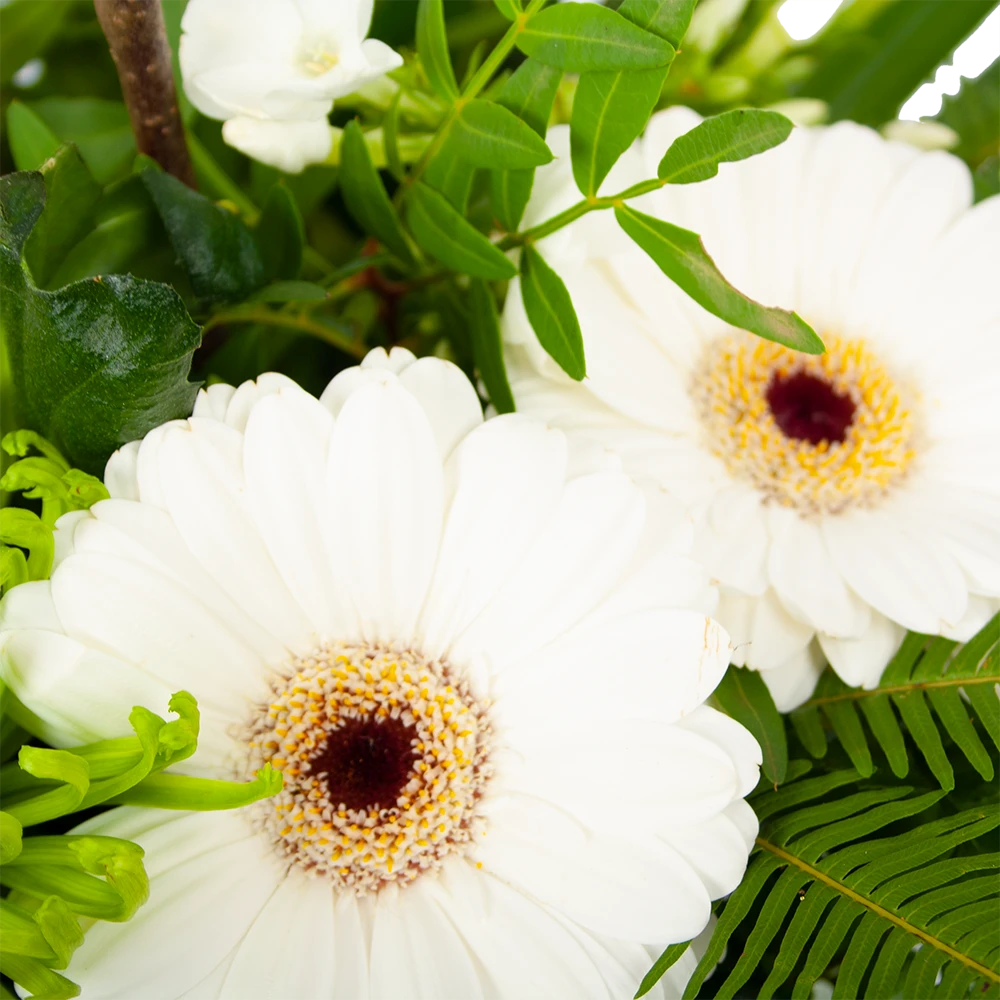 Met Boeket Liefdevolle Winter haal je een prachitg wit bladboeket in huis! Geniet van de mooiste witte bloemen. Altijd vers van de kweker! Verwen jezelf of verras iemand anders met een prachtig boeket. *Exclusief accessoires en vaas.