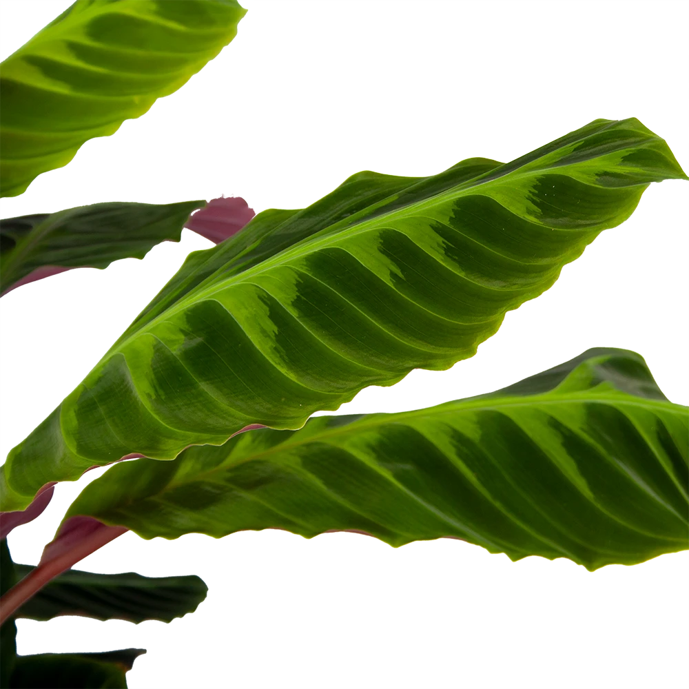 De Calathea Warcewiczii trekt niet alleen de aandacht omdat het een grote kamerplant is, maar ook door zijn donkere bladeren. Uniek aan Calathea’s is dat zij hun bladeren open- en dichtvouwen: geniet overdag van de groene bovenkant en ‘s avonds van de paarse onderkant. Vandaar de bijnaam Living Plant, maar Calathea’s worden ook vaak Schaduwplanten genoemd. In tegenstelling tot veel andere kamerplanten doet de Warcewiczii het dus goed op schaduwrijke plekken. Geef de plant regelmatig water en laat de grond tussen de waterbeurten door kort droog staan.